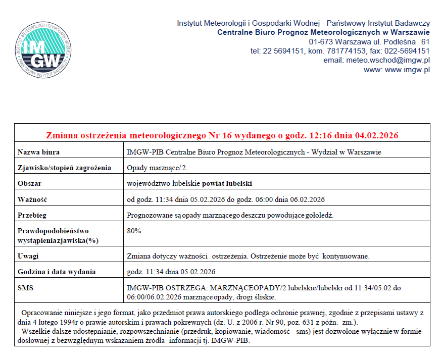 Uwaga na marznące opady deszczu i gołoledź!