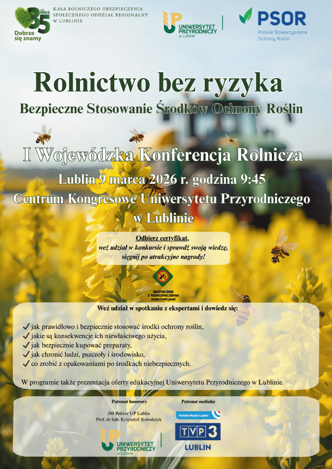 Organizatorzy: Kasa Rolniczego Ubezpieczenia Społecznego – Oddział Regionalny w Lublinie, Uniwersytet Przyrodniczy w Lublinie, Polskie Stowarzyszenie Ochrony Roślin.